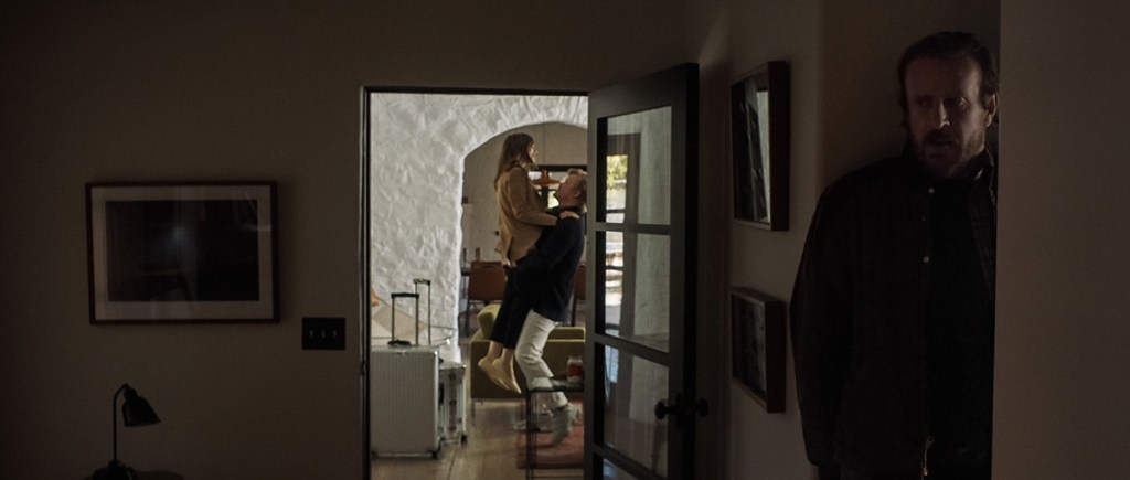 WINDFALL – (L-R) LILY COLLINS as WIFE, JESSE PLEMONS as CEO and JASON SEGEL as NOBODY. Cr: Netflix © 2022